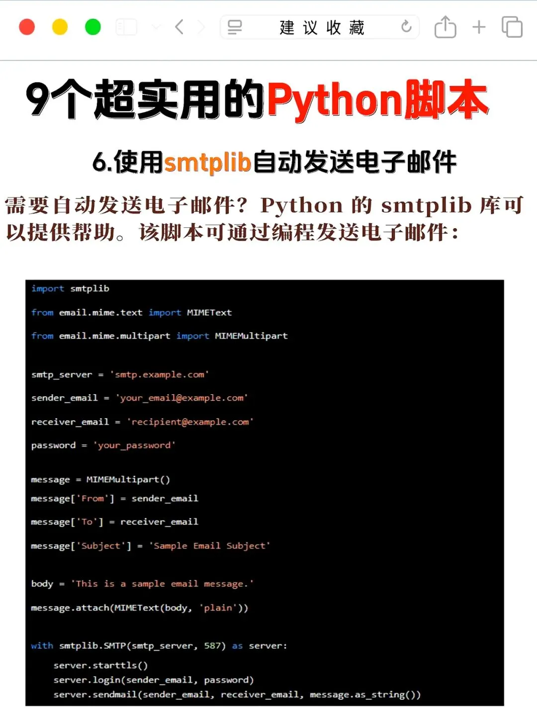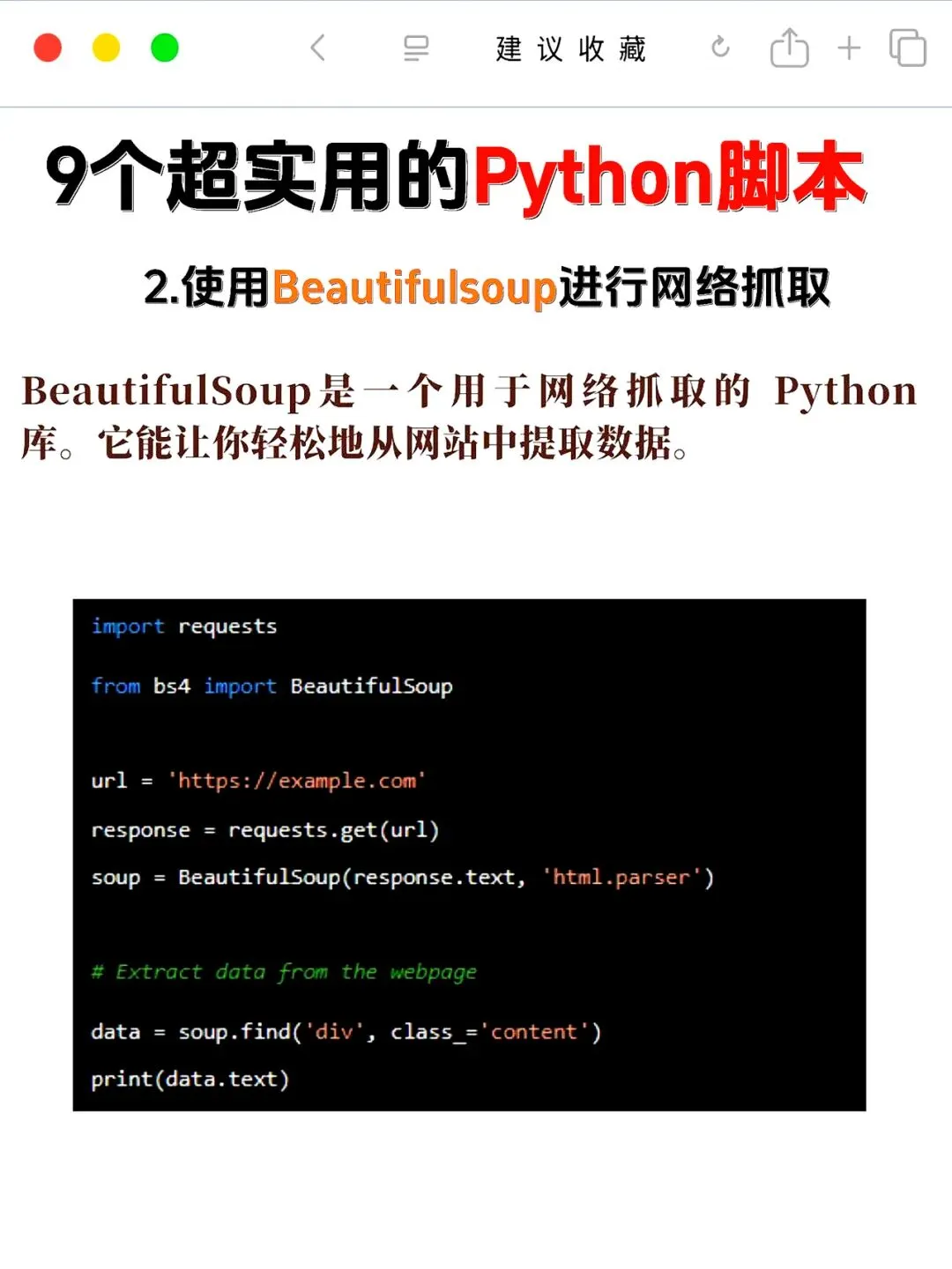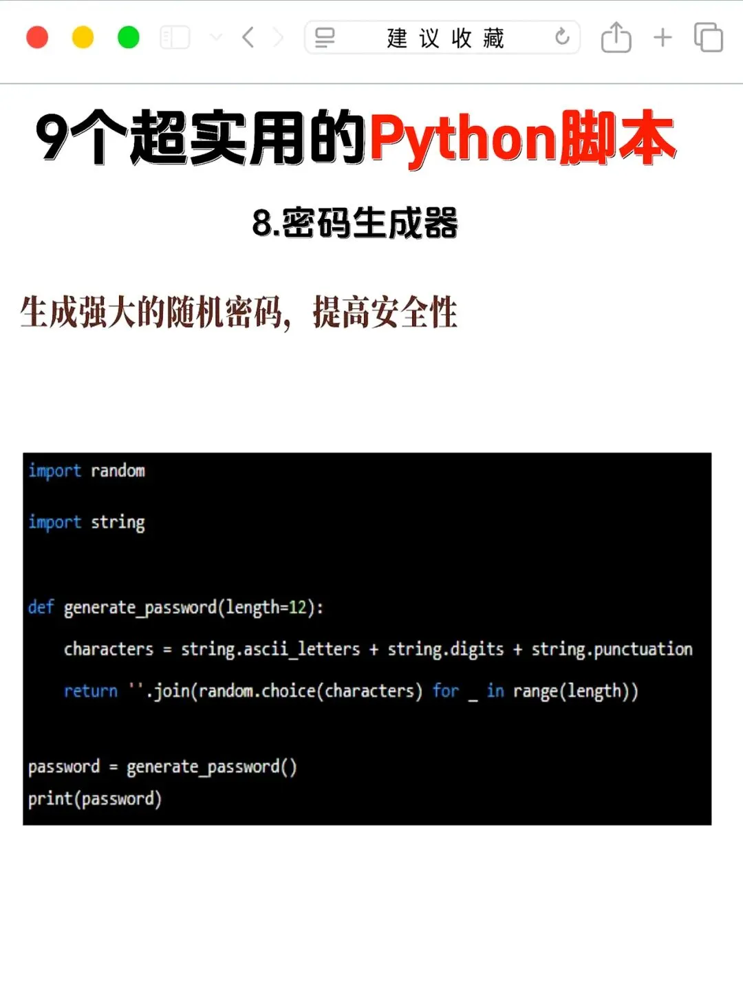 今天分享九个超实用的 Python 脚本,覆盖 Excel 自动化、文件管理、图片处理、数据抓取、定时提醒等高频场景。代码简洁易懂,改个路径就能运行,新手也能轻松上手,让代码帮你打工,告别无效加班!