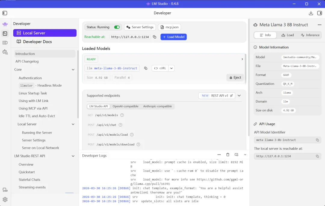 打开你的 LM Studio,启动 Local Server。只要你看到 http://127.0.0.1:1234/v1 这个端口号亮起,就说明你的本地大脑已经点火就绪。