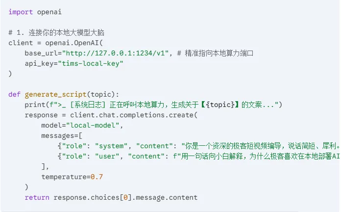 上一期我们已经用 LM Studio 把大模型跑在了本地。现在,我们需要让 Python 脚本去接管它。