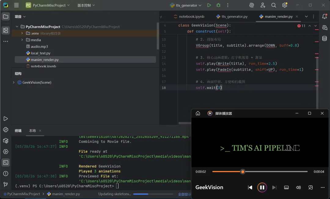 第三步:引爆视觉层(Manim 动画渲染引擎)