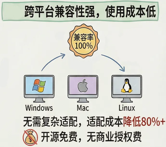 Python 是纯粹的跨平台语言,写好的代码可以在 Windows、macOS、Linux 上直接运行