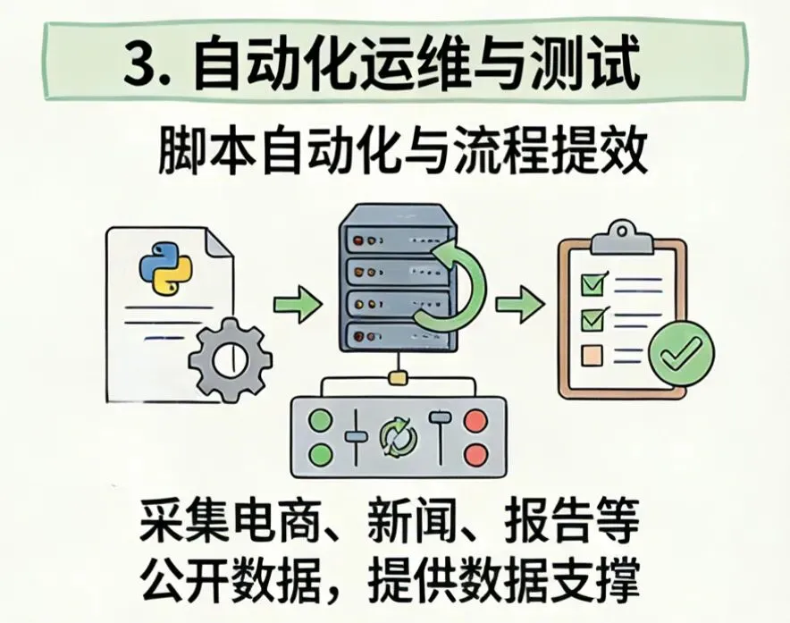 覆盖数据分析 / AI 开发 / 自动化办公 / 爬虫采集 / Web 开发 / 运维测试等场景,适配 20 + 行业,既能提职场效率(批量处理工作),也能支撑高薪技术开发。