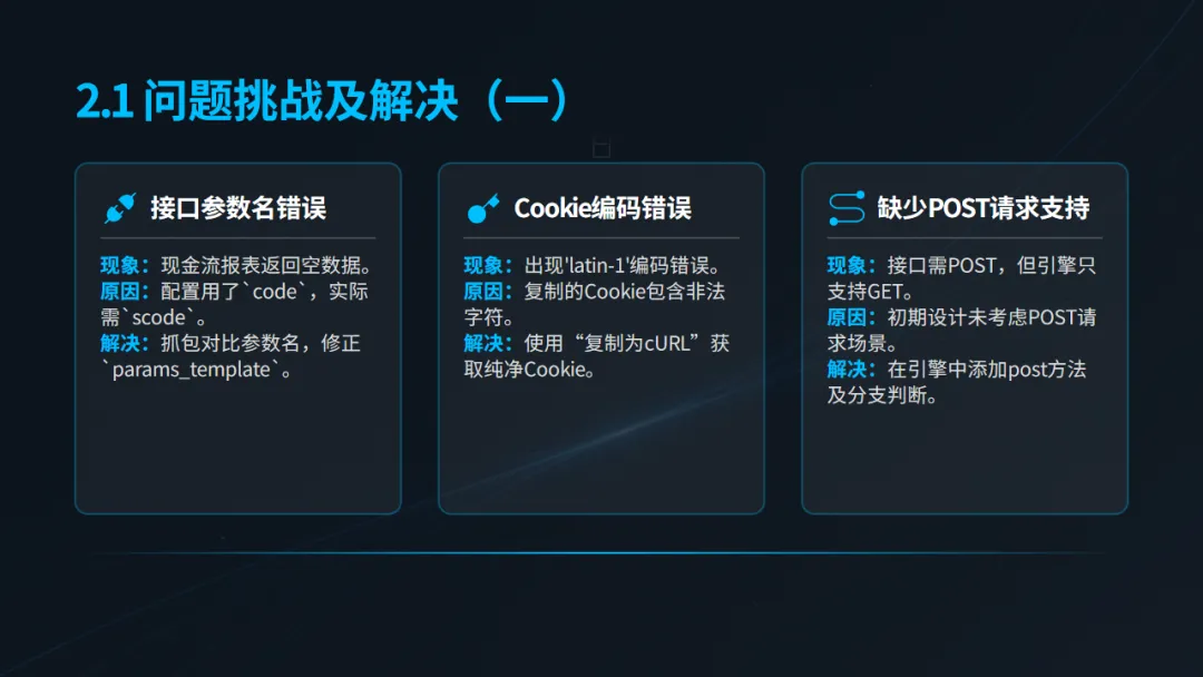 在实现过程中,团队攻克了多项技术挑战,包括补充对POST请求方法的支持、修正API参数混淆(如code与score),以及确保对分页数据的完整遍历,最终实现了从9个核心API接口稳定、完整地获取数据。