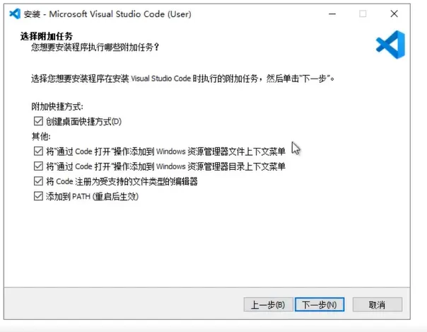 开发环境安装:下载Visual Studio Code, 然后双击安装。对于新手来说,下面这些选项建议勾选。
