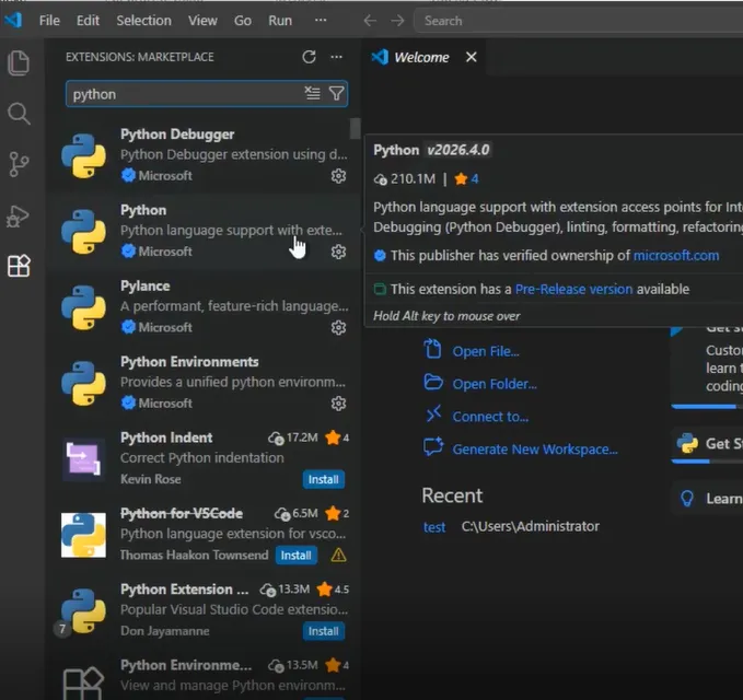 下面简单介绍Windows 系统下 Python 3.14 与 VS Code 的安装配置流程。