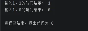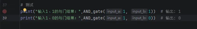 上面的代码是逻辑与门的操作,也就是python的符号&的用法:输入同是1输出为1,否则输出为0。下面是应用测试: