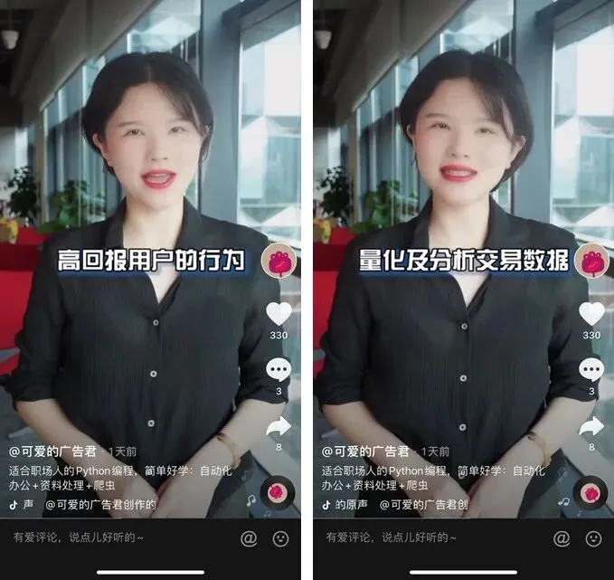 再比如编程小白从“不知道”到“知道”、比如刷个短视频的时间就能学完一节课等……