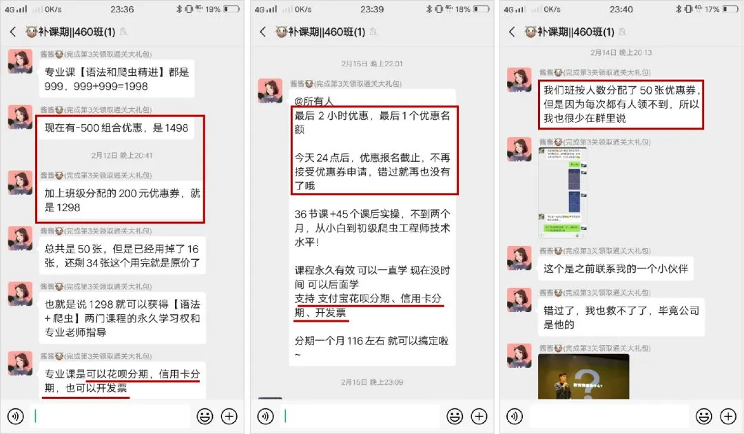 不得不说这波操作下来,很多人都心动了,不少人在群里问助教要优惠券。(我怀疑其中有托,但是我没有证据。