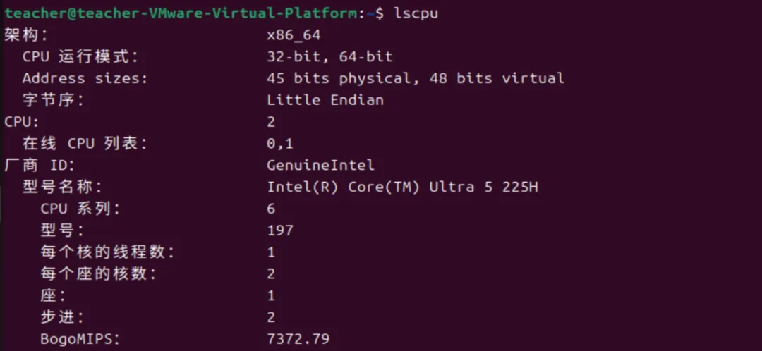 lscpu是专门查看CPU的命令,如果说lshw是综合查询命令,则lscpu是专业查询命令,它可以用来快速了解处理器的核心数、架构、主频、线程数等关键参数。
