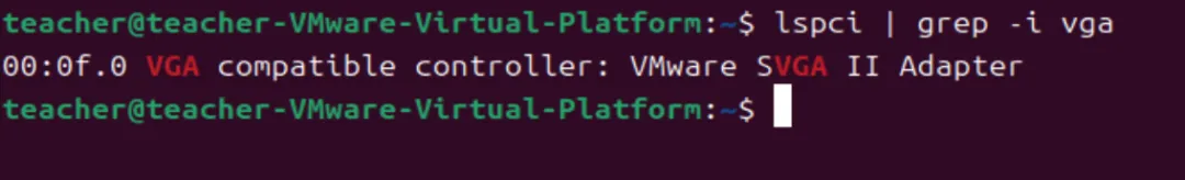 因为这是在 VMware 虚拟机 中执行的命令,所以显卡是虚拟的 SVGA II,而非物理显卡。如果是物理机,这里会显示真实的显卡型号(如 NVIDIA、AMD 或 Intel 核显)。
