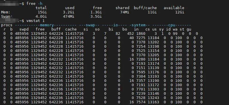 vmstat 1关注:si/so(swap in/out)wa(IO wait)