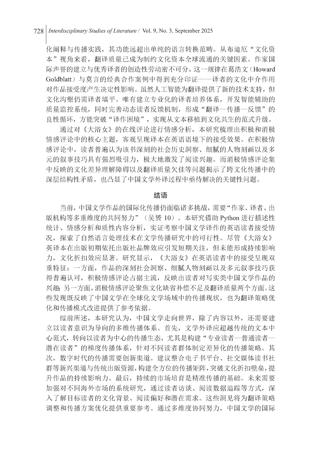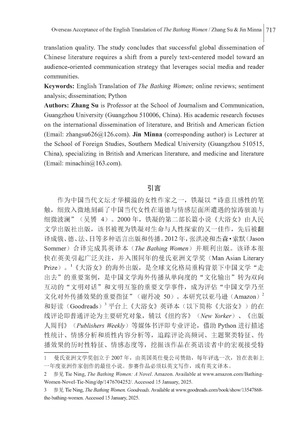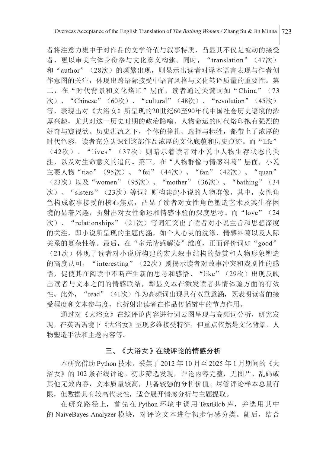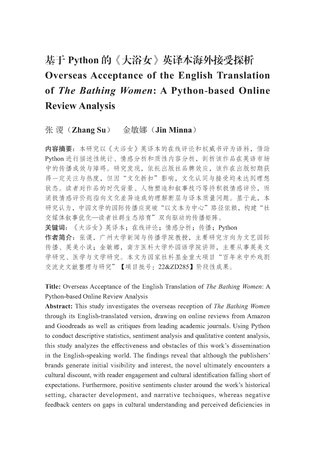 >张谡 金敏娜|基于Python的《大浴女》英译本海外接受探析