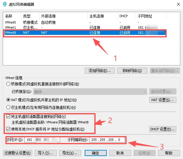 步骤 1:配置 VMware 虚拟网络编辑器