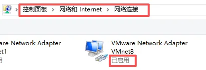 2.找到「VMware Network Adapter VMnet8」这个网卡,看它的状态是不是「已启用」;