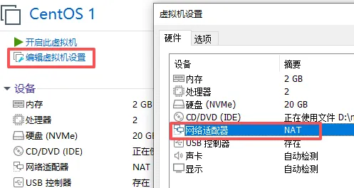 步骤 3:给虚拟机设置网络适配器模式