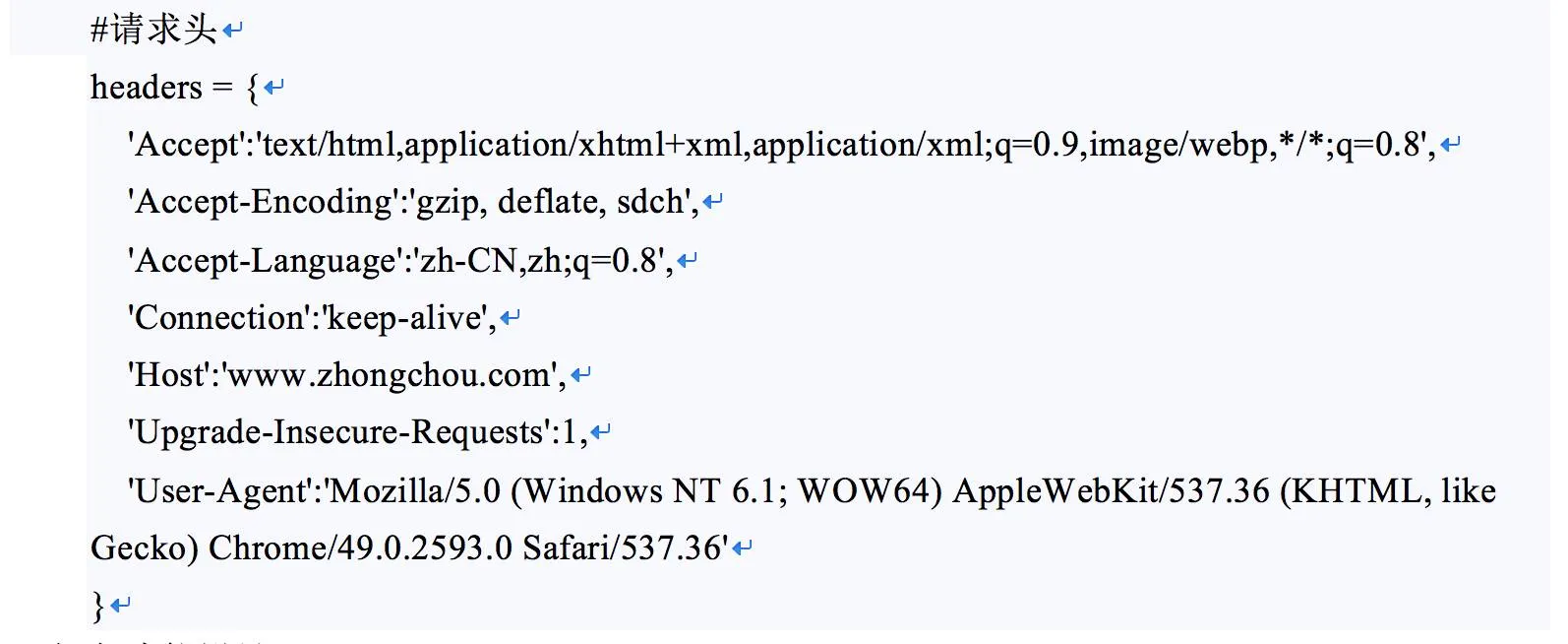 爬虫的设计中,为了降低被网站拉黑的风险,同时防止因为头文件导致爬虫获取数据内容的不一致,一致的web请求头是必不可少的,针对一些特殊的网站,甚至还需要人为的加入cookies、网络代理等形式去更好的保护我们的爬虫不被网站拉黑。文中作者由于测试目的及测试网站自身的反扒机制问题,并未使用较为繁琐的设定,具体内容如下: