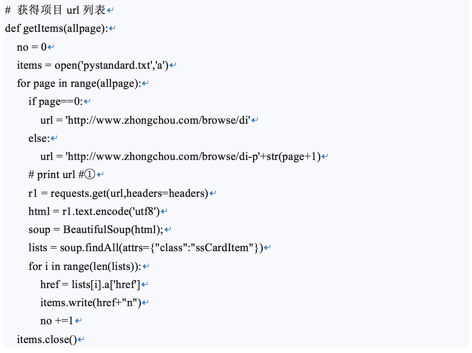 常规爬虫的设计中需要设定一个url队列,通过分工协作的方式,某些线程专门用于解析队列中的某类或某几类的url,某些线程专门用于将解析后的结果进行处理(数据落地,新url重入队列等)。文中作者分别制作了Python单线程版,Python多线程版和Node.js版3种爬虫,接下来我们一一分析作者这样设计的实现: