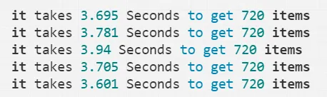 {it takes 3.695 Seconds to get 720 items