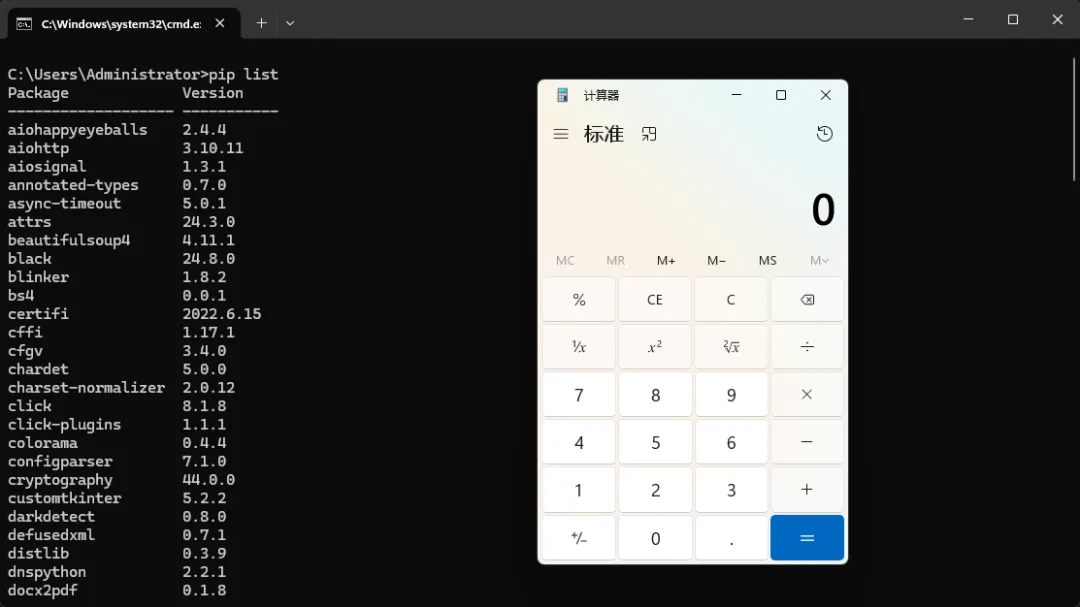 3. 如果尝试执行 pip 命令发现也会弹出计算器,这是因为 pip 它本身就是 python 脚本。