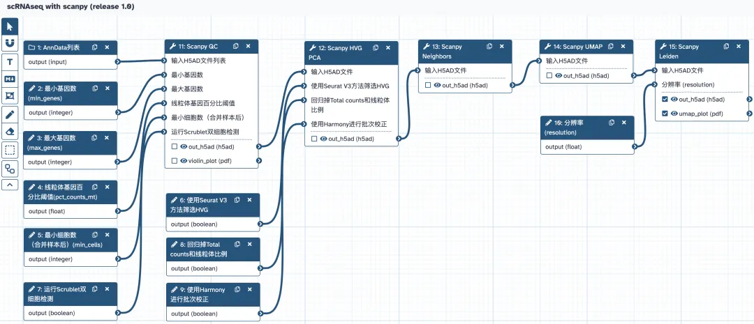 所有步骤浏览器操作,图形化界面,所见即所得。许多分析可以一键完成,比如质控、降维、批次校正以及聚类分析: