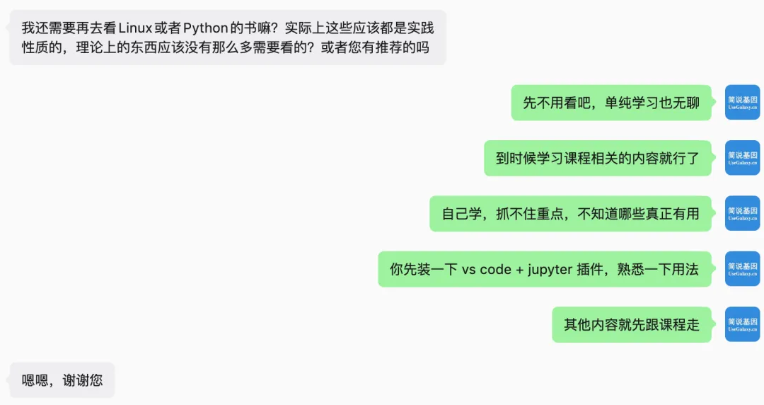 授课老师有多年大型生信云平台(UseGalaxy.cn)运营以及生物信息学工作经验。擅长 C++ 和 Python 编程,特别是管理的生信云平台底层本身是 Python 语言的,因此对于 Python 编程尤其熟悉(舒适区)。