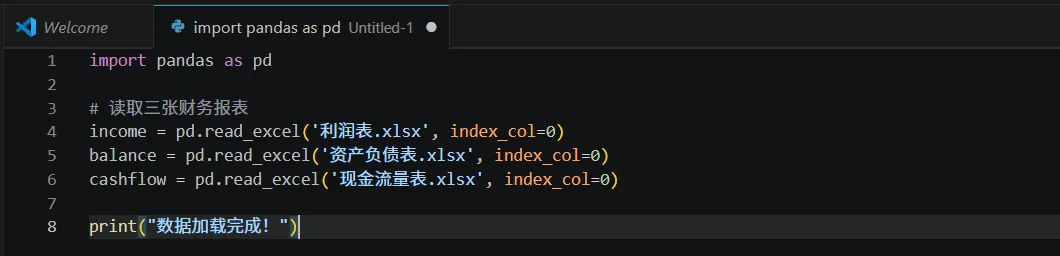 偿债能力关系到公司会不会“暴雷”。我们计算两个经典指标:流动比率和资产负债率:# 从资产负债表中提取数据current_assets = balance.loc['流动资产合计', '期末余额']current_liabilities = balance.loc['流动负债合计', '期末余额']total_assets = balance.loc['资产总计', '期末余额']total_liabilities = balance.loc['负债总计', '期末余额']# 计算偿债能力指标current_ratio = current_assets / current_liabilitiesdebt_ratio = total_liabilities / total_assets * 100print(f"\n💰 偿债能力诊断")print(f"流动比率:{current_ratio:.2f}(一般认为2以上比较安全)")print(f"资产负债率:{debt_ratio:.1f}%(一般认为50%-70%较合理)")