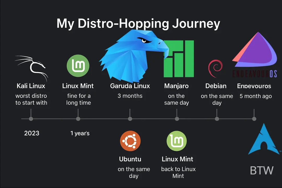 但对想换系统的普通人来说,这就是灾难。没有一个明确的“主流桌面Linux”。新手问“哪个distro最好?”答案可能是Ubuntu、Mint、Pop!_OS、Fedora KDE、Bazzite……然后陷入distro hopping(不停换系统)。