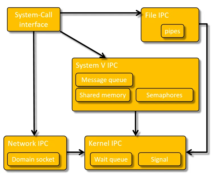内核IPC:等待队列、信号(Signal),主要用于进程间的同步和事件通知;