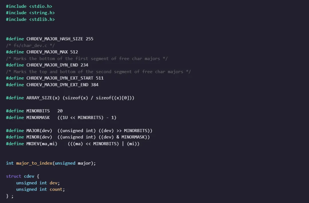 1 对应 mem,5 对应 tty)。操作依赖设备号,以下是常用的设备号操作函数(配套使用):