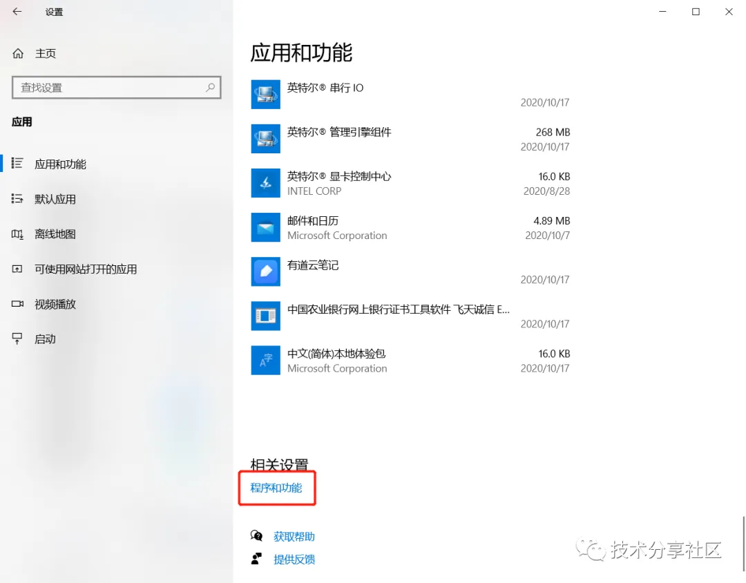 返回Windows设置,选择:应用--->程序和功能------>启用或关闭windows功能------>在出来的对话框中选择适用于Linux的Windowszi系统设置需要一小会时间。