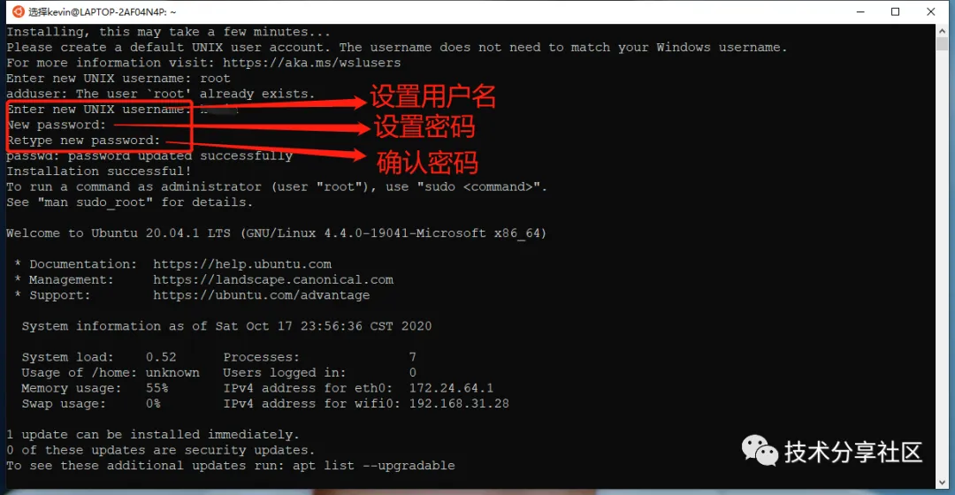 系统启动后会先设置用户名和密码,注意:密码在输入过程中不会有任何显示,实际已经输入成功,输入完成后回车即可