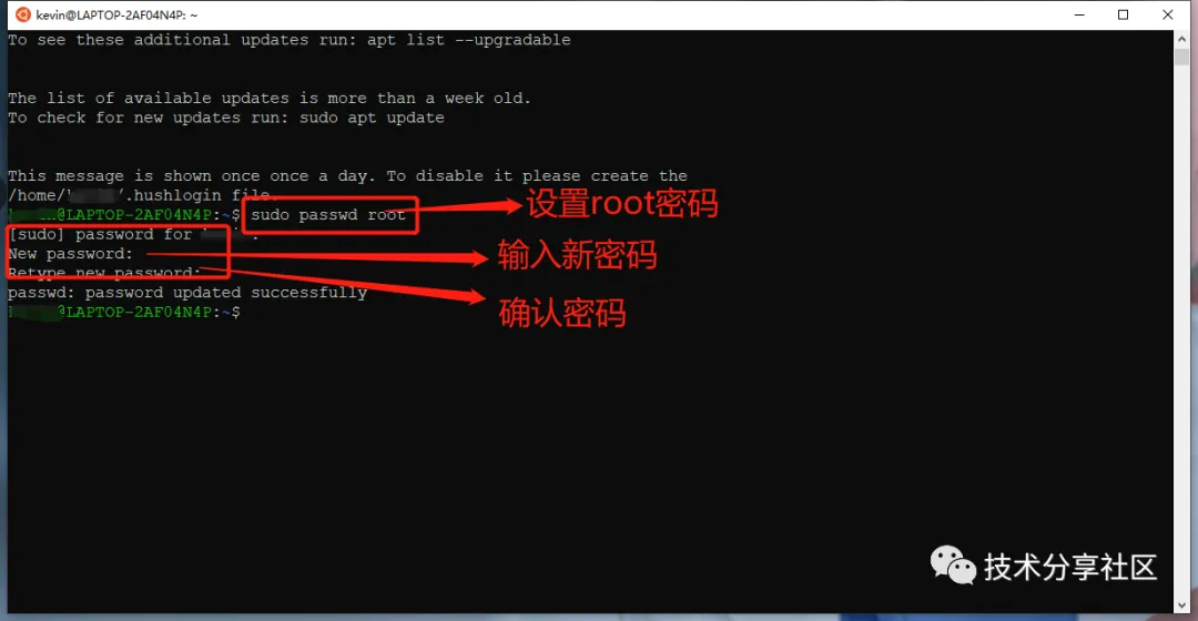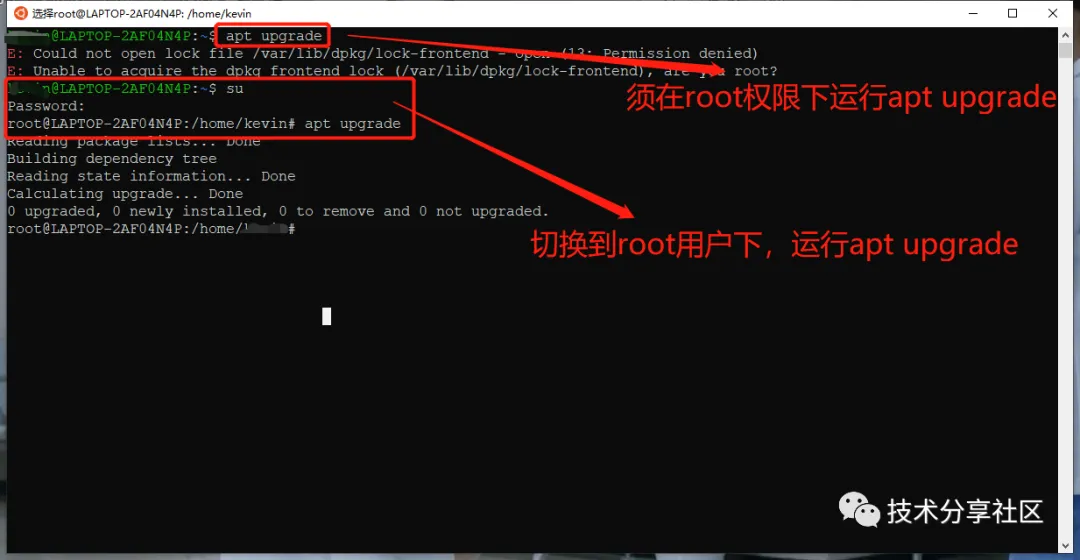 然后输入su并输入密码,切换到root用户下,升级apt