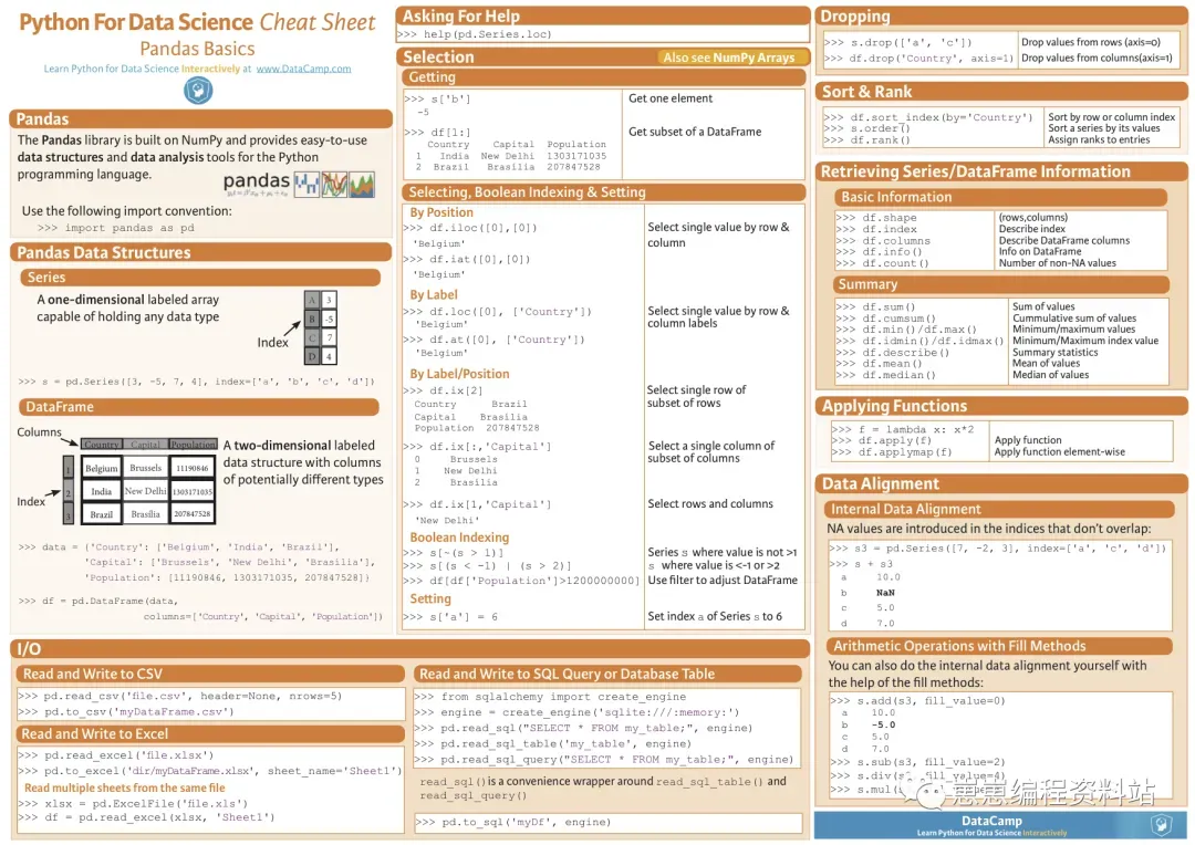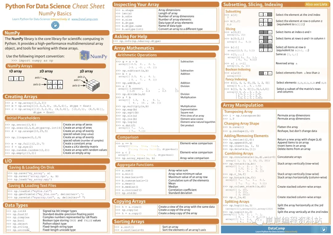 今天小编精选收集了众多 Python 相关的知识速查表,可以说是包罗万象,妈妈再也不用担心我记不住任何知识点了!