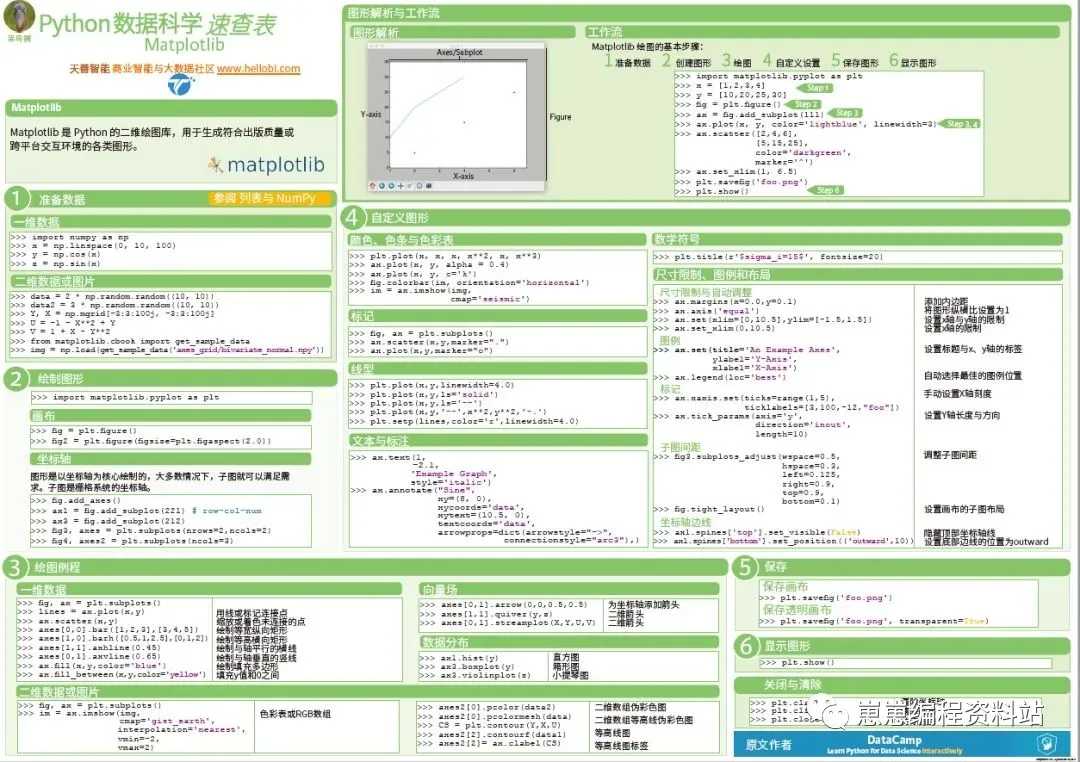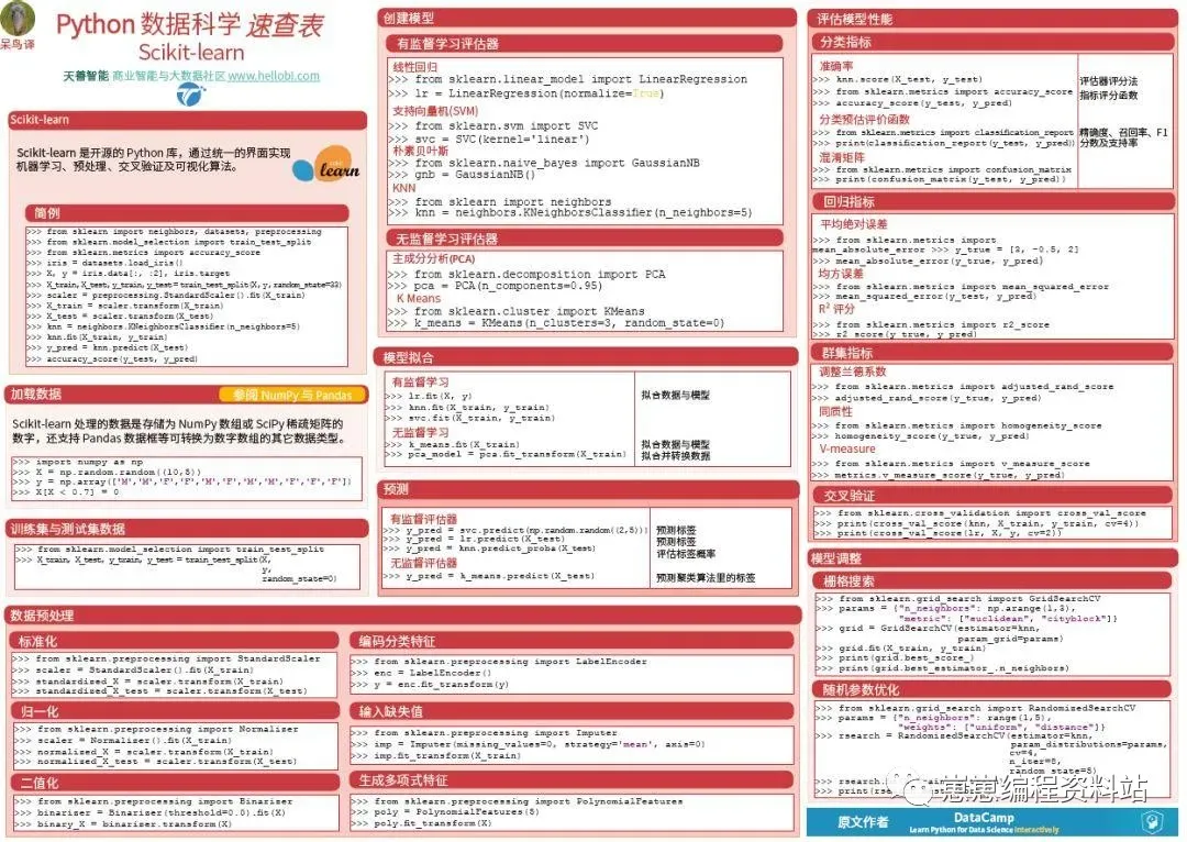 当面对Python基础、导入数据、Jupyter Notebook、Numpy基础、Matplotlib绘图、Pandas基础和进阶、Scikit-Learn、Keras等具体操作的知识时,经常很容易忘记。