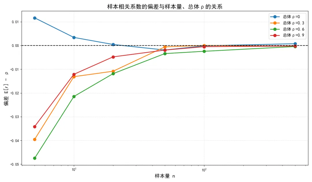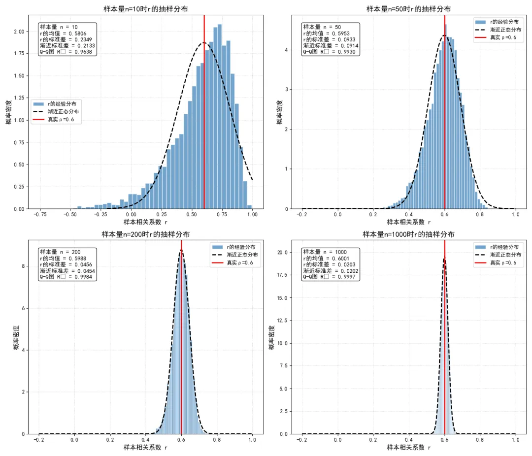 在抽样性质层面,我们明确了样本相关系数是总体相关系数的一致但有偏估计量,推导了它的渐近正态性,提供了小样本下的偏差校正方法,解决了小样本场景下的估计偏差问题。