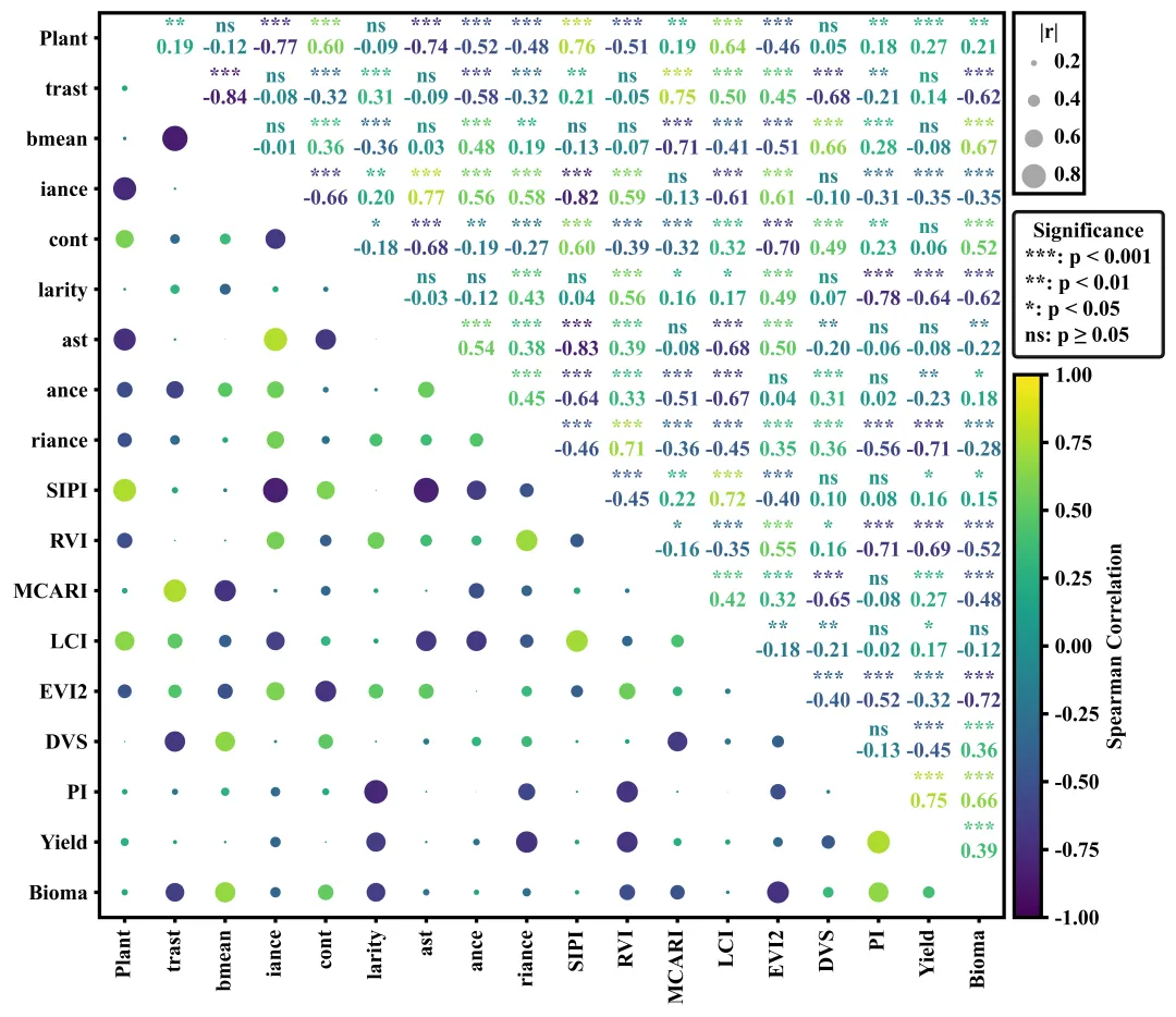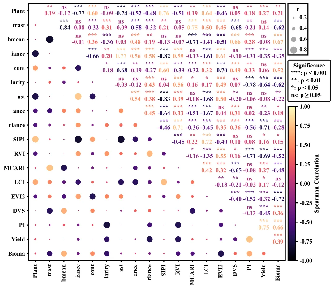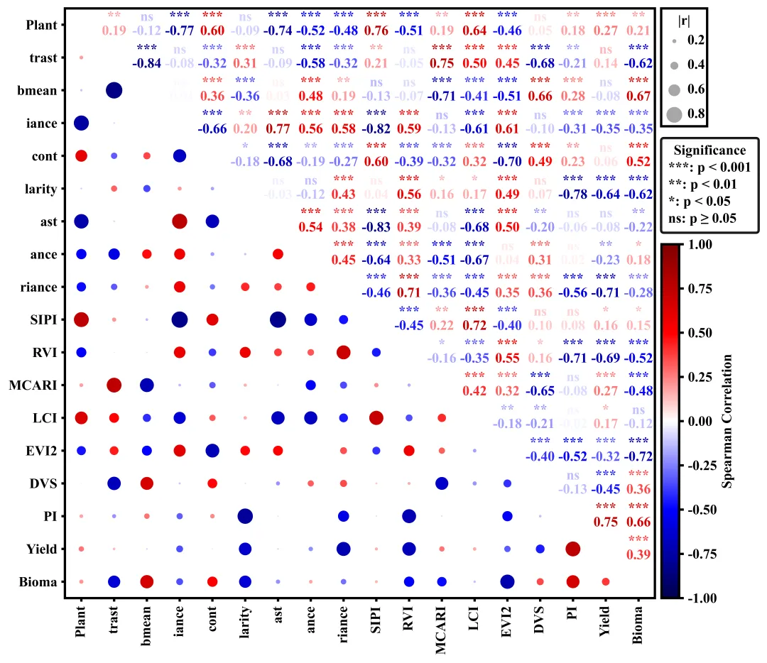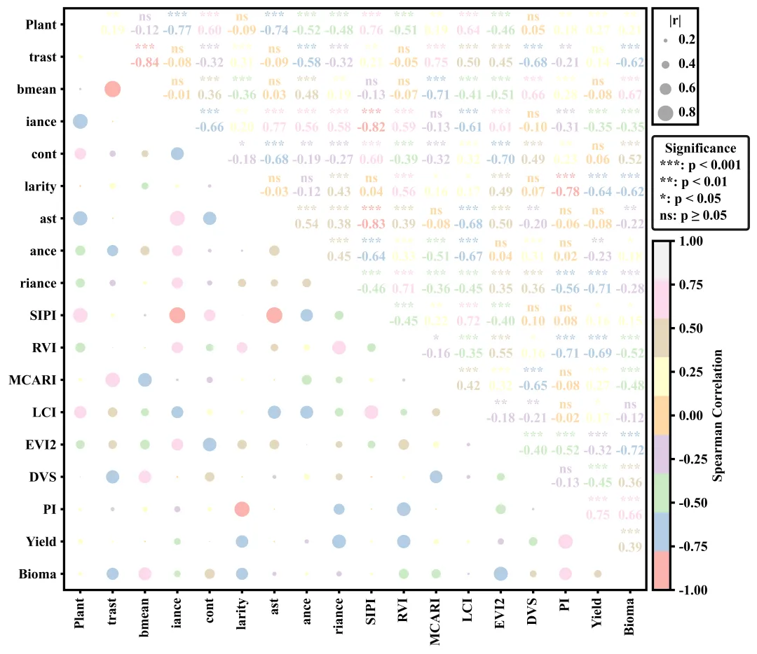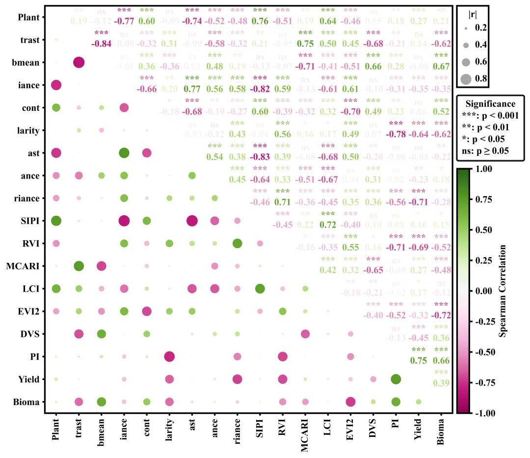 # =========================================================================================# ======================================6.执行部分=======================================# =========================================================================================if __name__ == '__main__':excel_path = r'data.xlsx' #原始数据路径df = pd.read_excel(excel_path) #读取数据df = df.iloc[:, :] #读取数据框中所有的行和列corr_df, pval_df = corr_pvalues(df) #计算相关系数和p值#执行绘图函数plot_correlation_matrix(corr_df, pval_df)