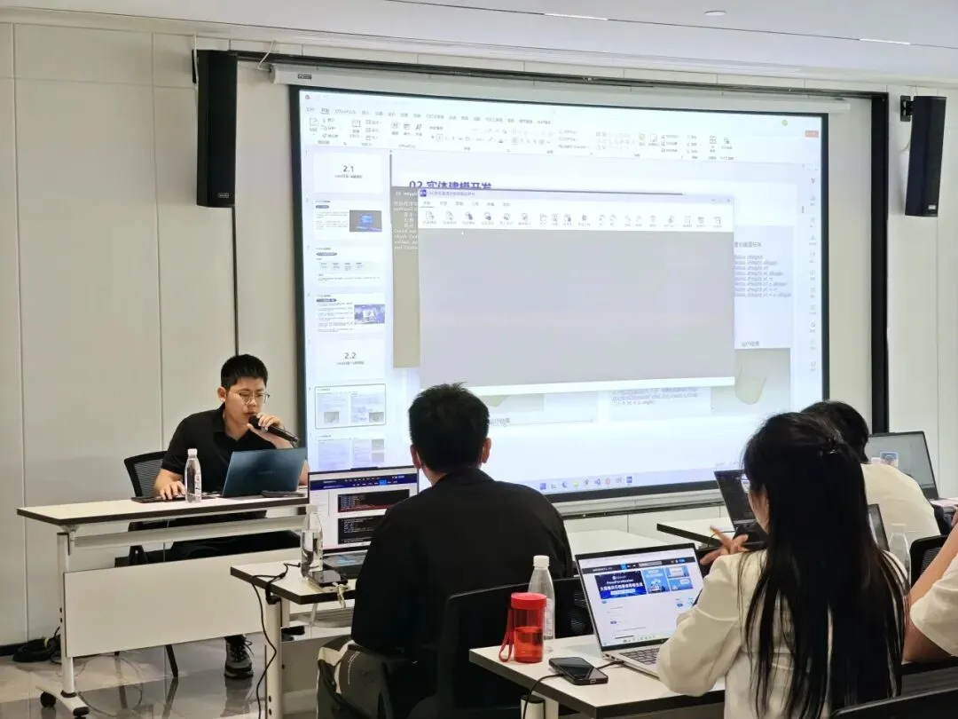 学员们从零开始,快速熟悉平台整体架构,顺利完成Python开发环境与GUI界面搭建。课程深入CAD核心开发模块,围绕实体建模、几何编辑与模型装配等核心技能展开,为后续学习打下了坚实基础。
