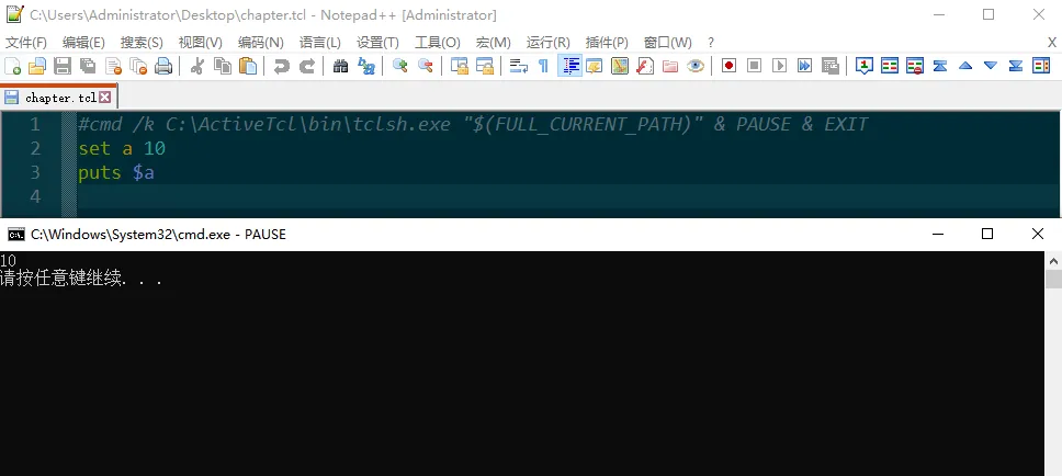 2.在Notepad++中运行tcl语言