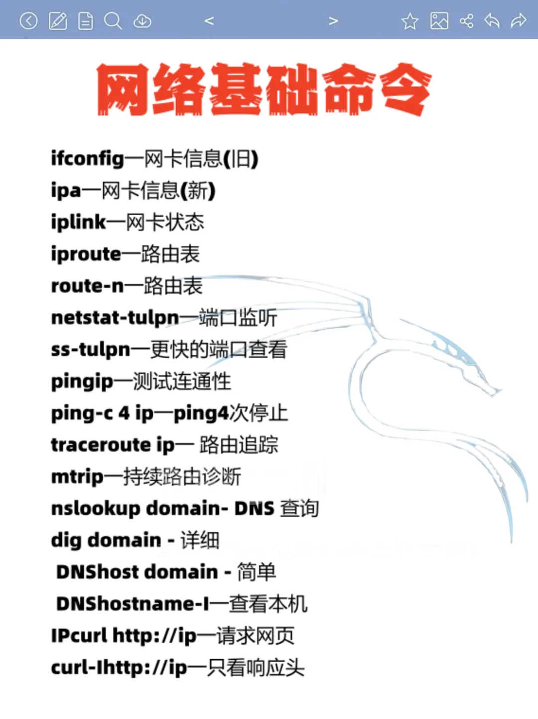 学 Kali,不用死记硬背所有命令,记住常用的就足够应付绝大多数场景。