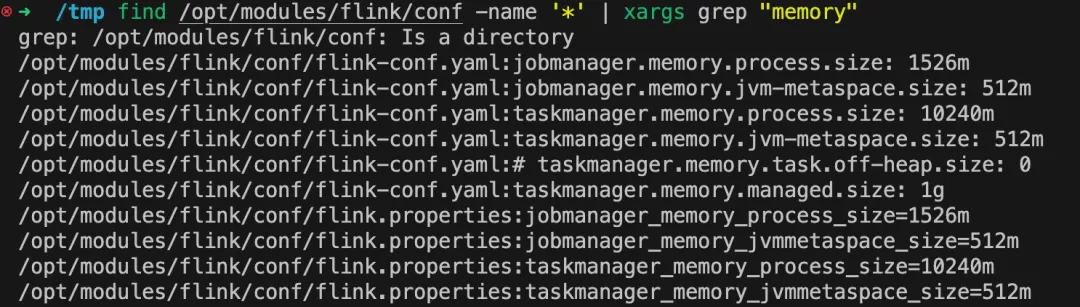 想查找 flink conf 目录下所有和 memory 相关的配置,可以通过 find + xargs + grep 进行批量文件内容过滤