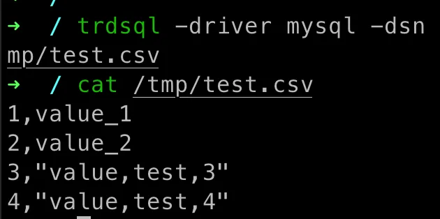 trdsql -driver mysql -dsn "root:123456@tcp(127.0.0.1:3306)/temp" -ocsv "select * from table_name limit 10" > /tmp/test.csv