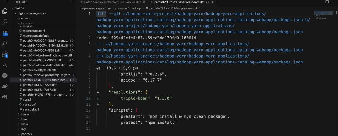 后来笔者在整理我自己维护的 hadoop 编译脚本的时候,遇到 yarn-ui 编译失败的问题( 对应 BIGTOP-3526[14] ),也试着通过 patch 的方式记录编译问题的修复文件,发现一用就离不开了,这种机制可以保证我每次重新编译 hadoop 都能成功