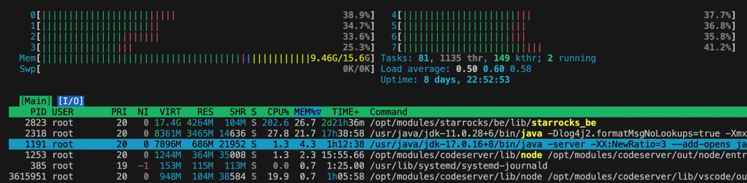 遇到服务器发生 cpu 和内存告警的时候,之前我第一反应是先用 top 指令,查找占用资源最多的进程,但 top 展示信息的直观程度稍弱 ,htop 完善了这一点