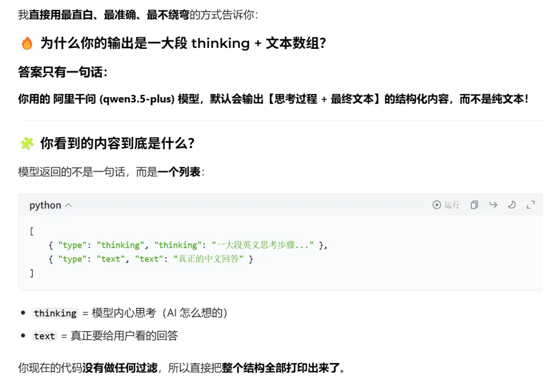 随后,豆包就给我直接返回一段融合了阿里千问大模型的代码。
