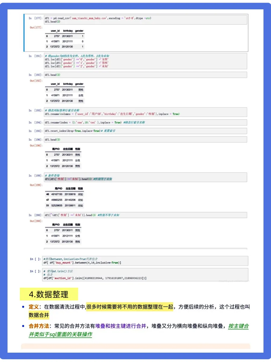 大家好,今天给大家整理了Python数据清洗方法的详细讲解汇总~~