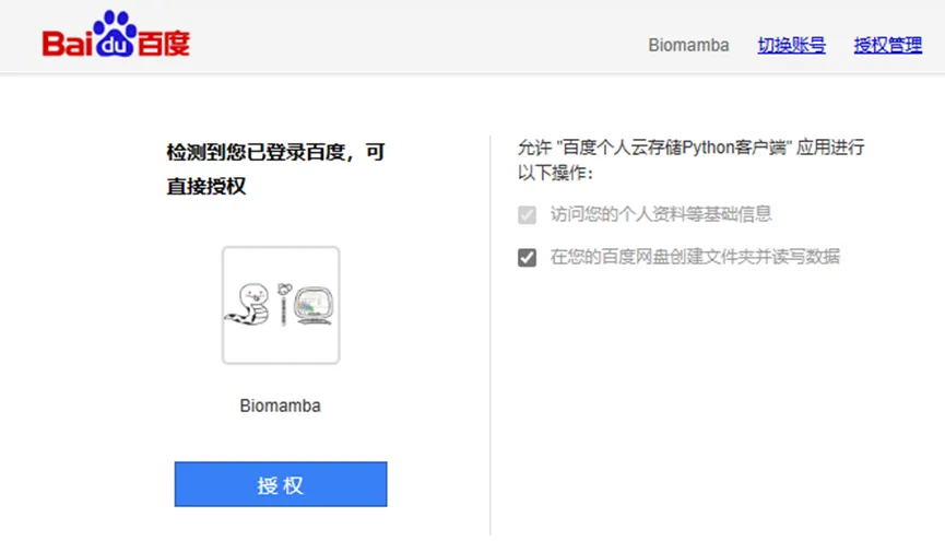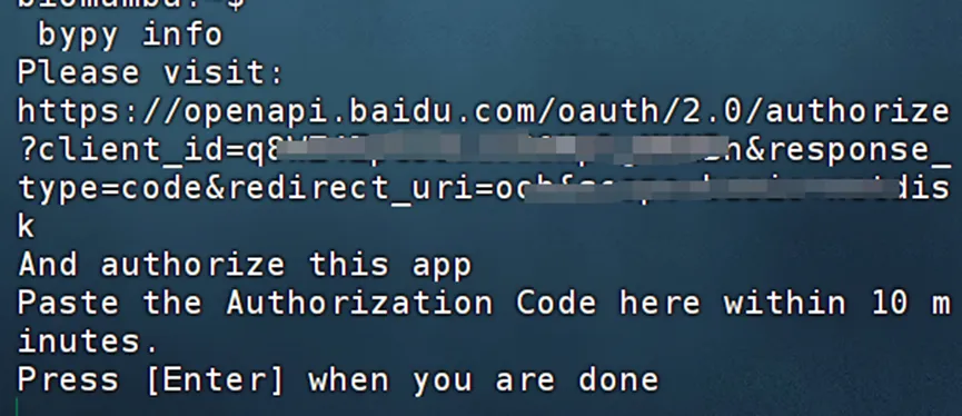 # 安装bypypip install bypy# 配置账号密码:bypy info