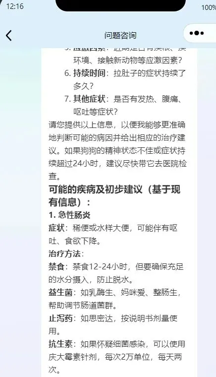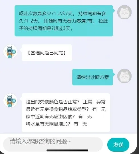 想到一个思路,第一问【我家狗拉肚子】时,直完基础问诊,就走专家诊断,看会出什么问题。