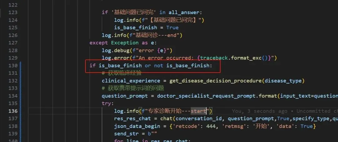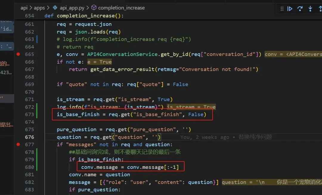 优化的思路是:把是否完成基础问询传过来,如果是,就把聊天记录的最后一条舍弃掉,这样应该就好了,所以,接下来,要修改传参数。