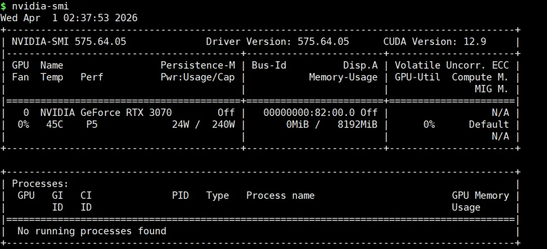 # 1. 创建新的 conda 环境conda create -n rapids python=3.11# 2. 使用 conda 安装 RAPIDSconda install rapids=24.04 -c rapidsai -c conda-forge -c nvidia -y # 3. 安装额外的 RAPIDS 组件conda install cudf=24.04 cuml=24.04 cugraph=24.04 cuxfilter=24.04 cucim=24.04 pylibraft=24.04 raft-dask=24.04 cuvs=24.04 -c rapidsai -c conda-forge -c nvidia -y # 4. 安装 rapids-singlecellpip install rapids-singlecell# 5. 安装 OmicVersecurl -sSL https://raw.githubusercontent.com/Starlitnightly/omicverse/refs/heads/master/install.sh | bash -s难点,我们自己GPU显卡已经安装,且可以看到,如图所示。但是,无法在 omicverse中识别