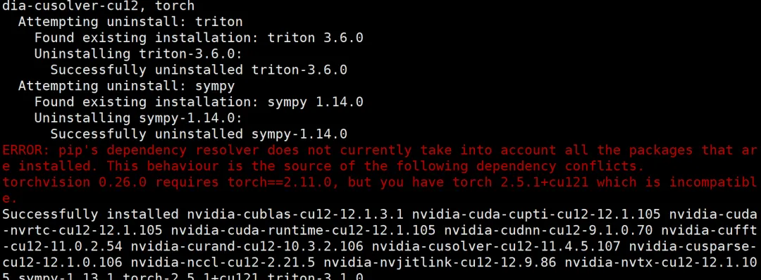 pip uninstall torchvision -y重新执行以下命令